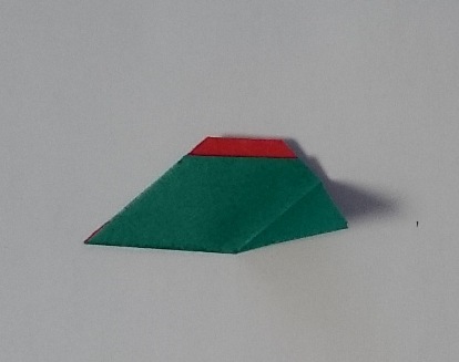 片方を三角のお山のてっぺんに合わせて折ります。