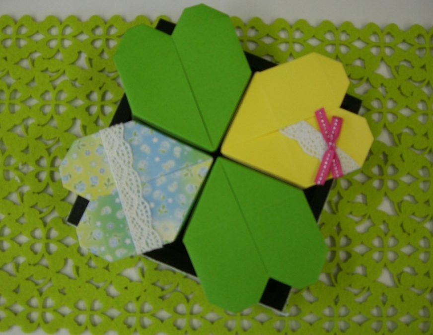 ごとうオリジナルハートBOXをステキに仕上げてくれました。 元はこちら→春のきせかえBOX おりがみ教室の鈴木さん佐藤さんの制作です。 工夫次第で見事に変身!すごく嬉しいです♪
