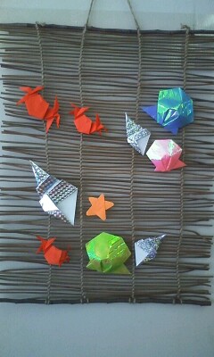 さて、今年は折り紙で一つの作品を作ってみることにしましょう。折り紙ではいろいろな物ができますが、あれもできる、これもできるというだけでは何か物足りないように感じる時もあります。今回はいくつかの折り紙を組み合わせて、お部屋に飾って楽しめるような作品に仕上げてみましょう。夏らしく海の生き物のモビールを予定しています。工夫次第でオリジナルの素敵な作品ができあがります。楽しみにしていてくださいね。