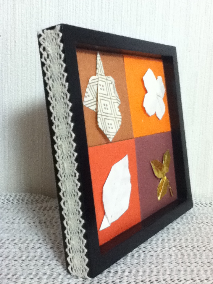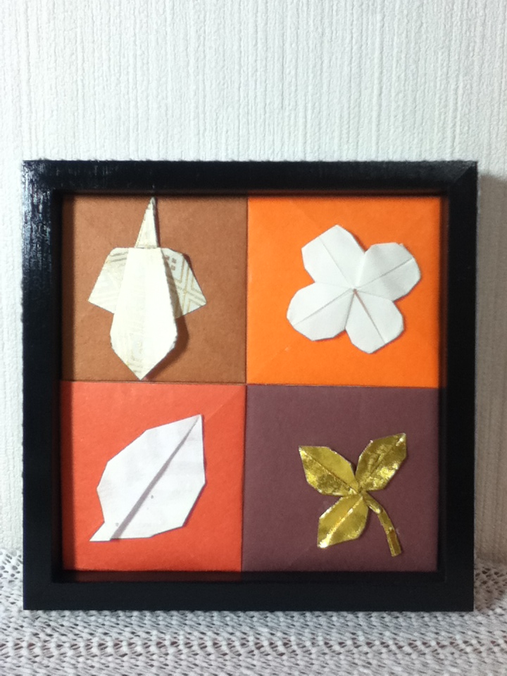 100円ショップで買った茶系のランチョンマットの上に飾りました。